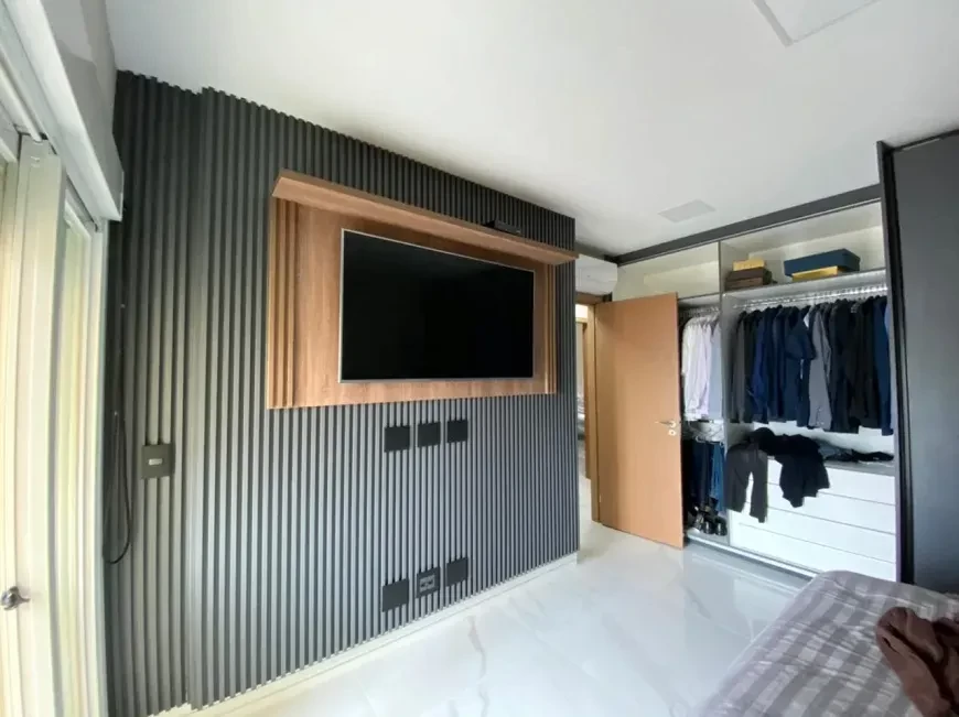 Maravilhoso apartamento novo pronto para morar, com 143 m² de área útil, sendo 03 suítes, sala para de ambientes com varanda gourmet, cozinha, área de serviço, banheiro e 04 vagas de garagem. O Edifício tem projeto arquitetônico seguindo estilo neoclássico, composto de duas torres, totalizando 51 unidades em terreno de 2.900m². O empreendimento conta com piscina de 20 m com raia coberta, piscina externa c/ deck molhado, hall social com pé direito quádruplo, espaço gourmet com churrasqueira e forno de pizza, salão de festas, salão de jogos adulto, salão de jogos infantil, playground, fitness center, Spa, sauna, brinquedoteca, home cinema, espaço mulher, ateliê e quadra poliesportiva